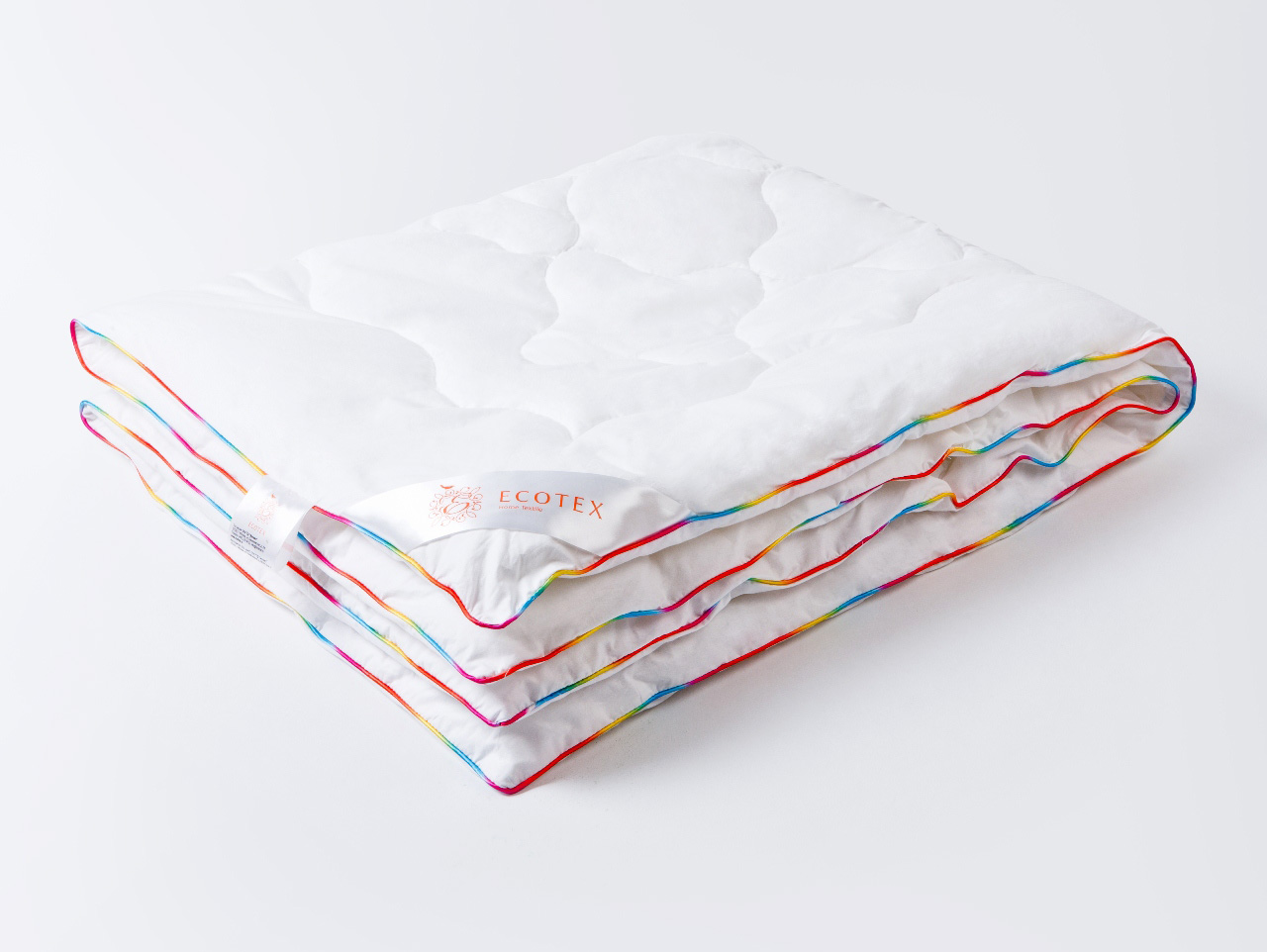 Чехол одеяла сделан из перкаля — экологически чистой ткани высокой плотности, что является залогом долгого срока службы и износостойкости изделия, стильно оформлен и по периметру окантован разноцветным кантом, который придает особую прочность и упругость краям изделия. Анатомическая стежка надежно удерживает хлопковый наполнитель внутри изделия, не дает ему деформироваться.